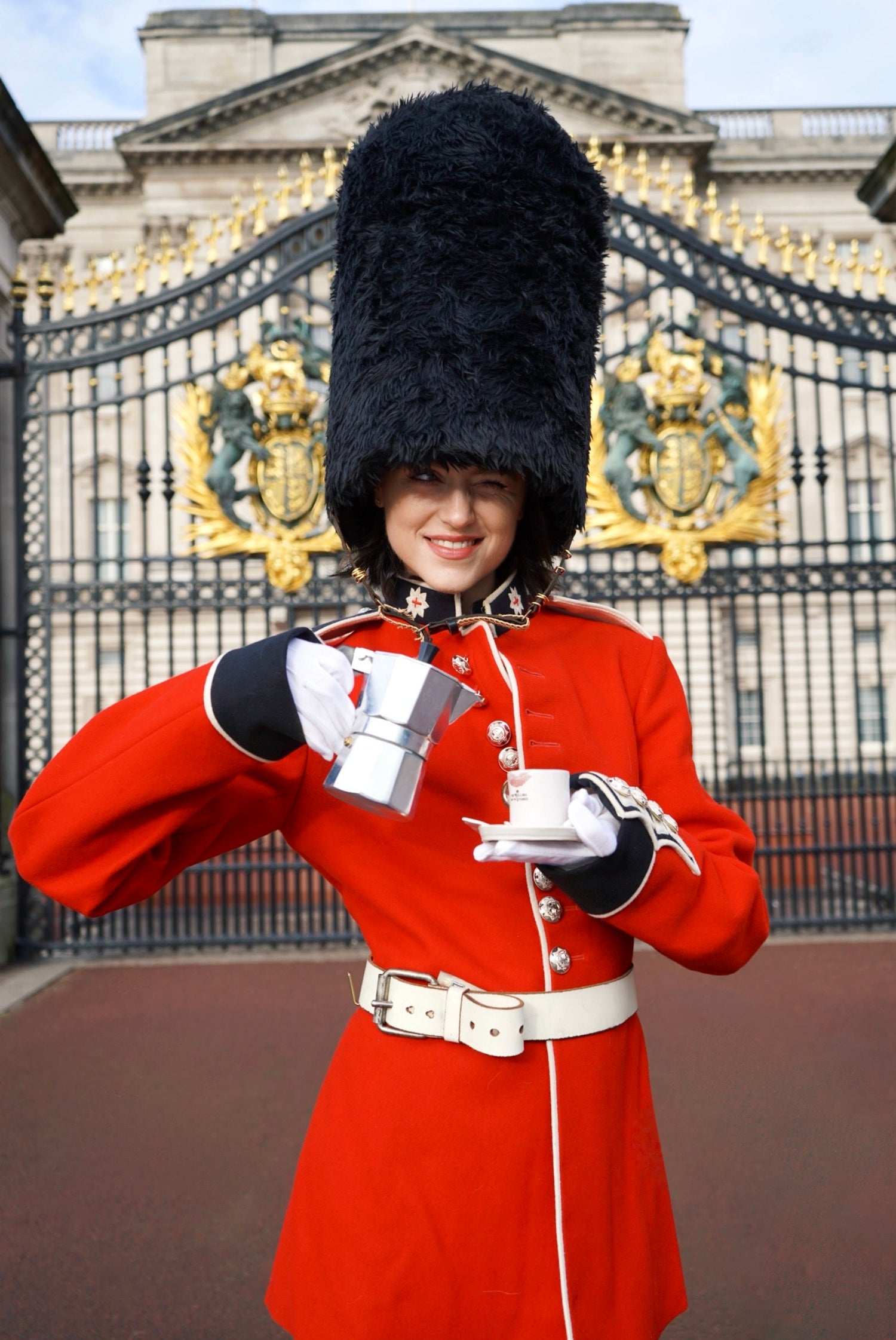 Meet our new muse, royal guard and espresso enthusiast - Biba. Shot outside Buckingham Palace while the capital was still sleeping, this London Calling moment is The Rolling And The Stoned at its most irreverent. And yes . . we did catch the other guards attention.